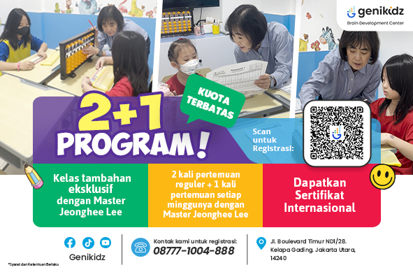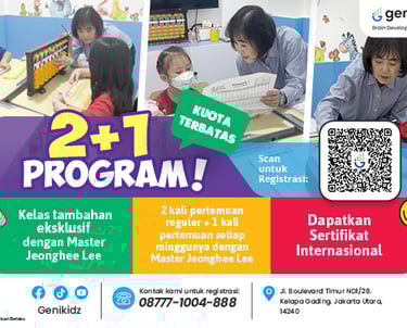 Tidak perlu mencari lagi, karena Genikidz dengan bangga menawarkan 2+1 Program eksklusif.