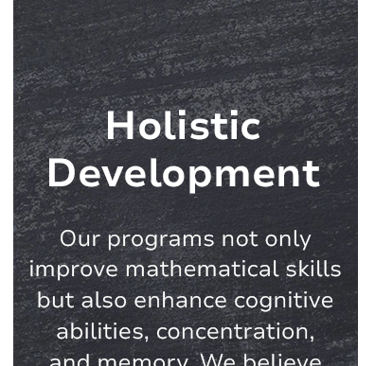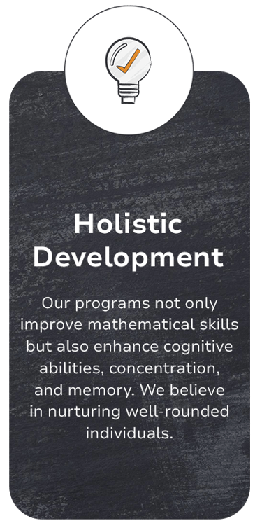 Through these activities, children are able to develop their ability to visualize numbers, use the abacus, and perform calculations mentally.